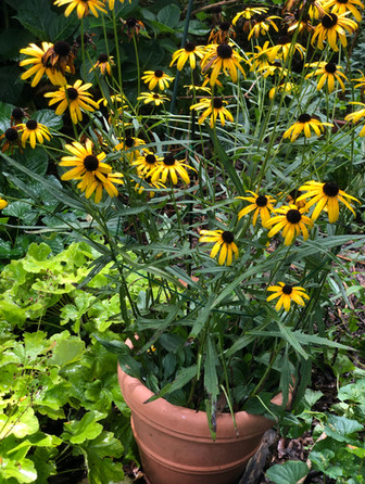 Karen is a big fan of natives in containers too. One of her super suggestions is for red twig dogwoods (Cornus sericea). As winter approaches, she cuts the red twigs to create winter arrangements in pots. This also encourages the plant to send up new stems in spring and the fresher stems are always the redder stems. She usually adds 5 or so twigs to each arrangement. She leaves the dogwood stems in the pots and by mid-summer those have rooted in and you have a new shrub!